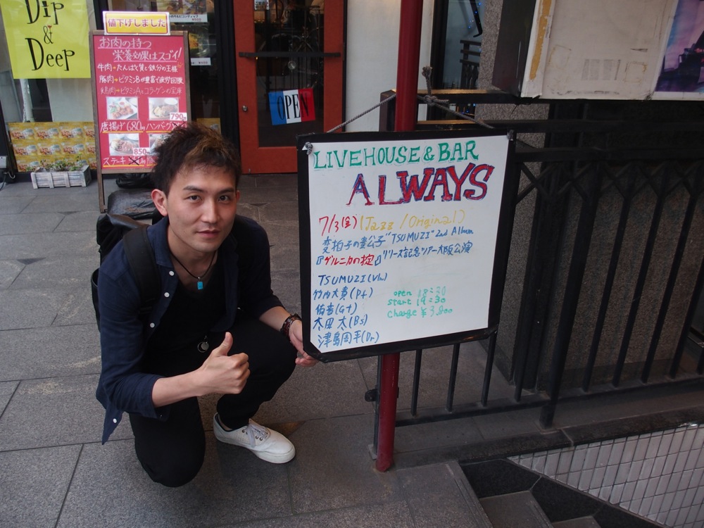 いつも以上に Tsumuzi 君も喋り、そしていつも以上にソロも白熱していたように思いました。新たな土地で得られるパワーを、そのまま自分の演奏に吸収させた、良い始まりの1日になったと言えましょう。お客さんからの笑顔も大事に受け取り、また大阪に帰ってくるという自信への繋がりにもなったと思います。Always の皆さんにも、大変お世話になりました。改めて、どうもありがとうございました!