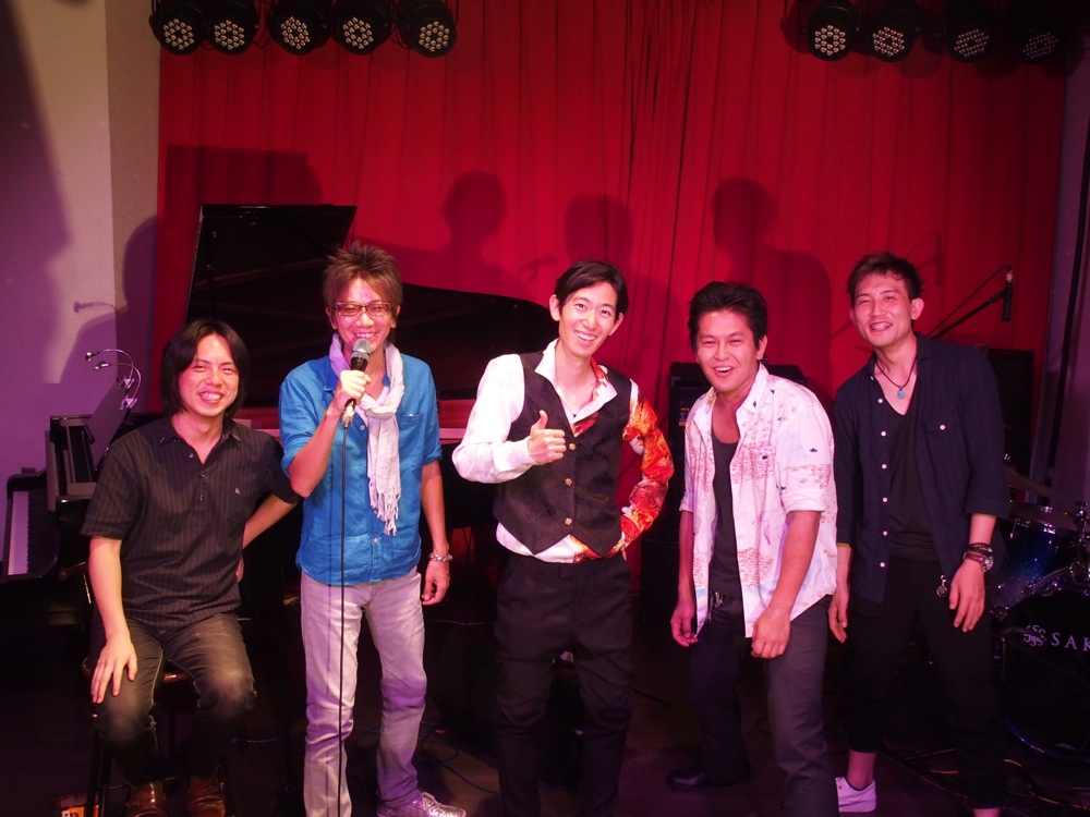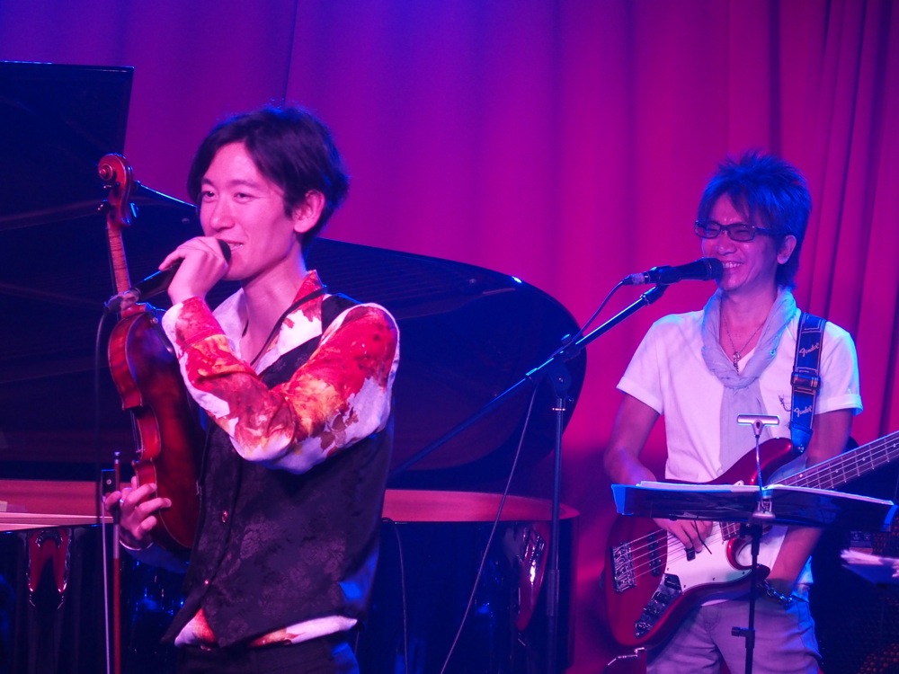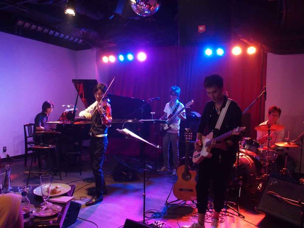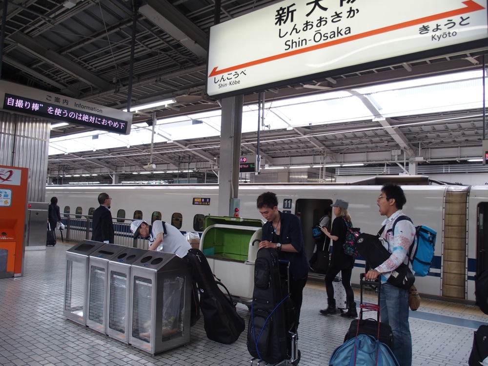 今回の演奏メンバーは、この時に既に何度も御一緒していた5人。バイオリンの Tsumuzi 君を筆頭に、ピアノに自分、ギターに侑音君、ベースに太田太君、ドラムに津島周平さんという面々です。Tsumuzi 君と太田君とは現地合流になっており、自分も含めた残りの3人で東京駅に集合して、新幹線で大阪へと向かったのでした。