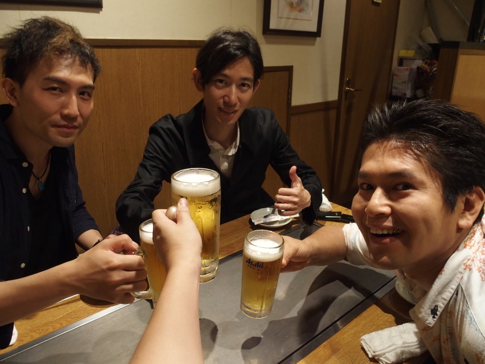 今回、1日目となる大阪でのライブは、この2ヶ月前に TRI4TH で大阪に来た時にライブをやらせて頂いた〔TRI4TH、関西ツアー(2015.5.18〜5.22)参照〕、梅田 Always にてでした。既にお馴染み感があって嬉しいですが(笑)、お店に入ると、既に太田君が祝杯をあげていたようで、こちらの方が昔から馴染みがある感じになっていたのは流石でした(笑)。早速自分も頂いて、乾杯します。
