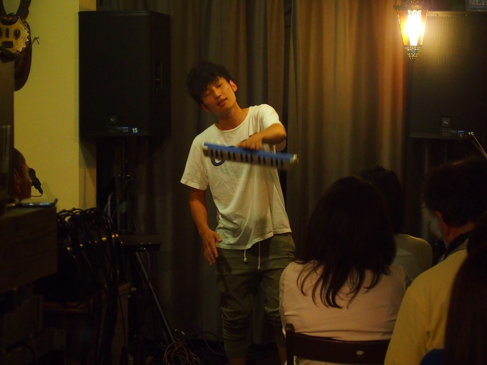 それはトップバッターの水井君のライブを見て、即座に伝わってきました。ピアノ弾き語りというスタイルではあるものの、そこから生まれる世界は“弾き語り”と括るには勿体無い程だと思います。元々、オリジナル曲の個性は強かったですが、更に説得力というものが加わったのが今回のステージでした。見て納得、聴いて納得。圧巻でありました。