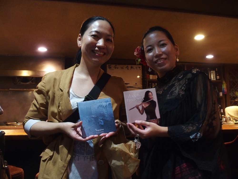 この日に『LEQUIO HISTORIA』は一般先行発売という形をとったので、今回演奏する曲の殆どは新曲という印象を持たせ、今までの曲でも新たなアレンジを加えつつ演奏していったので、お馴染みのお客さんでも、だいぶ新鮮味のある耳で聴く事が出来たのではないでしょうか。これは自分達も同じ事で、せっかくのデュオ編成で、CD制作時から協力して音楽を作っていった部分もあったので、新たな世界観を提示していくという試みは大きかったと思います。ポイントはフルートとピアノで、1対1の関係性にしていきたいという事でした。通常ですと、フルートはメロディ、ピアノは伴奏者という位置付けがなされるので、どうしてもメイン演奏者はフルートという見え方になると思うのですが、今回はアレンジの時点から、お互いが寄り添って曲を構成させる手法をとっていきました。ピアノがメロディをとる部分もありますし、フルートとハモらせる部分もあります。伴奏にしても決まり事を多くして、ただの即興演奏では無い事も表現していきます。…言わば、作品の方向性がより明確になってきたのかもしれないですね。ジャズ的なアプローチも勿論取り入れますが、根本的には沖縄の音楽を、より多くの人と共有していきたいという、強い気持ちの表れが大きくなっているのかもしれません。そして今回のライブも、その想いを皆さんと分かち合わせるべく、やっていきました。そんな中での満員御礼という状態…。こんなに嬉しい状況が他にありましょうか…。