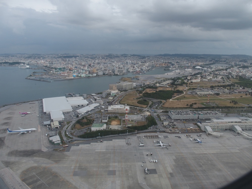 この1年半の間に、自分は色々な地方にも行かせて頂いていますが、やはり沖縄という目的地はまた違った旅情を感じさせます。国内でありながら、どこか異国情緒漂う場所に向かうからでしょうか。期待に胸を膨らませ、いざ飛行機の中へ…。今回は窓側をキープ出来たので、翼付近ではあったものの、離陸後の富士山や、直陸前の沖縄の風景等を臨む事が出来ました。そして、沖縄の暑い空気に身を包まれる事になるのです。この感覚も久し振りでした。