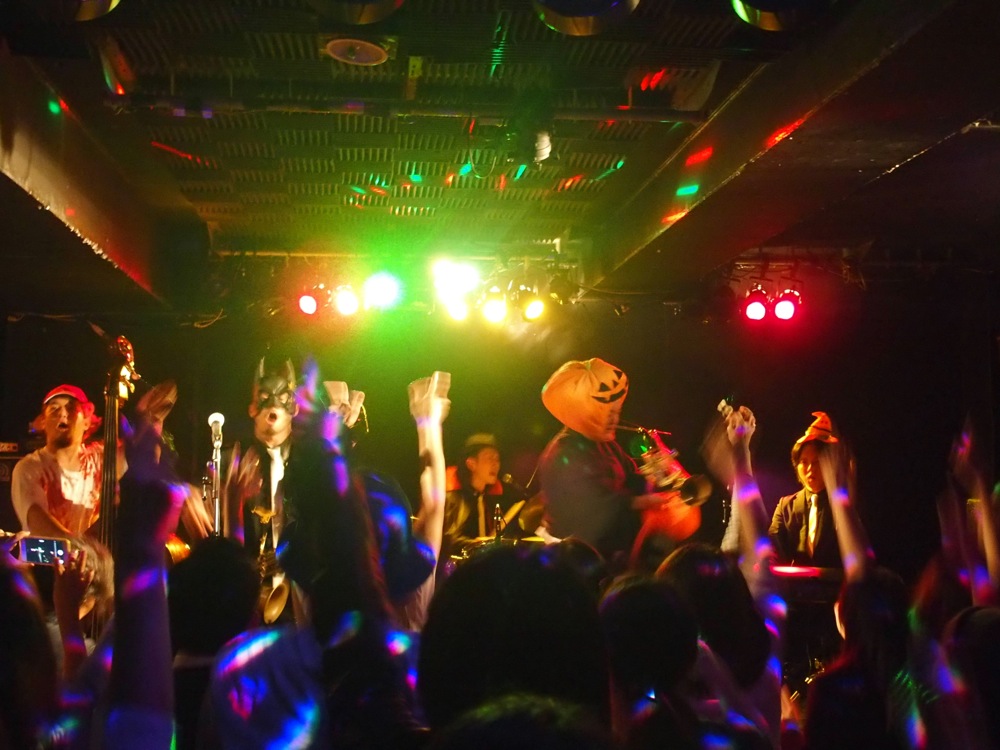…ところで、このツアーの2日間は、ハロウィンの機運が高まっている時期でもありました。自分達としてもせっかくなので、アンコールはそれぞれ仮装をしてステージに上がり、そのまま演奏させて頂きました。それぞれのキャラ付けですが、自分の見解も含めると…、