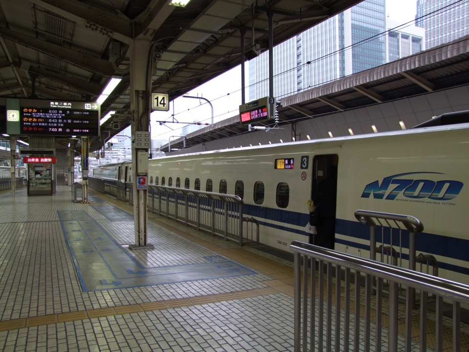余部(山陰本線では“餘部”駅と表記)に東京から向かうには、新幹線で京都まで行って、そこから山陰本線に乗り換えて行くのが一般的でしょう。今回もそれに乗っ取り、東京駅を朝1番に出発する(6:00発)、東海道新幹線『のぞみ』1号で、まずは京都駅へと向かう事にしました。そんな『のぞみ』1号ですが、実は現在の東海道新幹線において、一番早い列車でもあります。