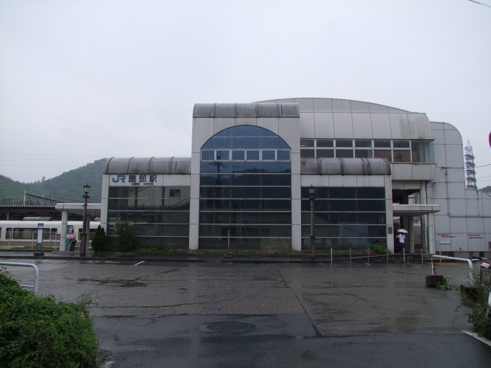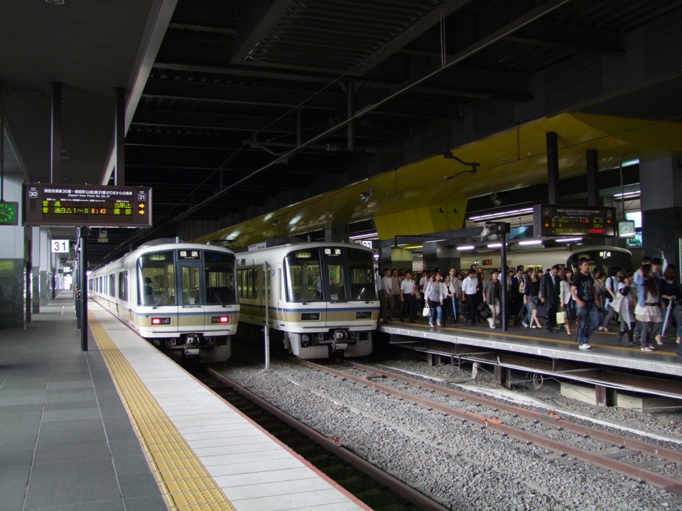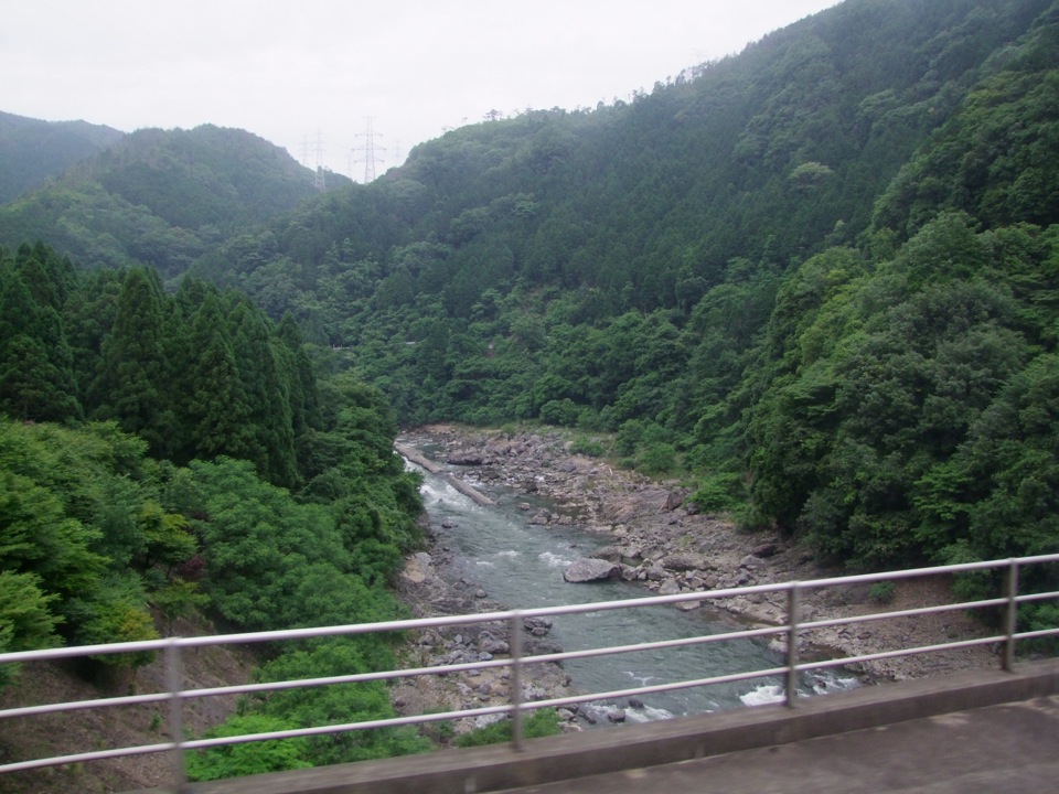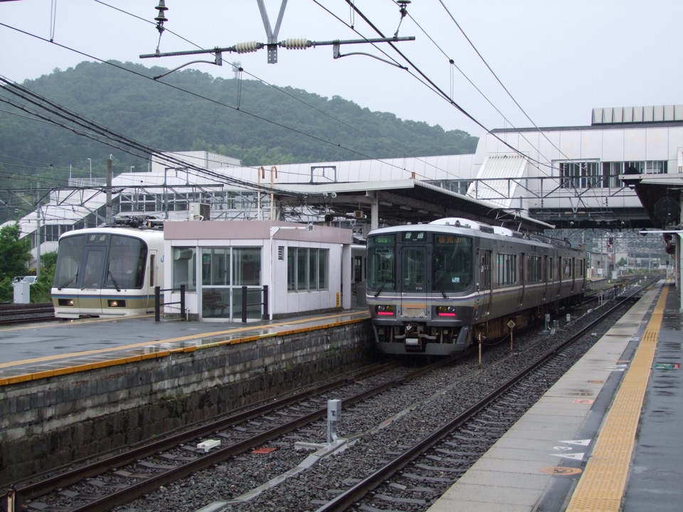 京都駅を出て、二条駅、嵐山駅と、京都のお馴染みの地名を通りながら京都盆地を抜けます。この先、亀岡駅までの10kmくらいの間は、かつては、保津峡と呼ばれた渓谷に沿って線路が敷かれていて、それは情緒溢れる景色が展開されていたものでしたが、現在では長いトンネルで一気に駆け抜けてしまって、車窓からの景色はトンネルとトンネルの間の明かり区間の一瞬くらいしか楽しめなくなってしまいました(その代わり、所要時間は大幅に短縮されました)。流石に旧区間を惜しむ人も多く、この線路を使って、嵯峨野観光鉄道という、トロッコ列車で楽しめる鉄道会社が出来た事も、御存知の方は多いかもしれませんね。自分はこちらの鉄道には乗った事が無いので、いつか乗りたいとは思っているのですが…。