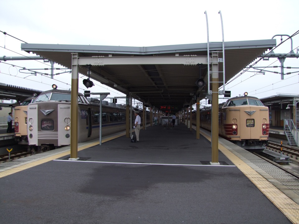 これらの車両は、殆どが485系という、旧国鉄時代に造られた車両によって運行されているのですが、このうち、『北近畿』号と『きのさき』号は、新しい車両による置き換えが発表されています。これらは、旧国鉄色(左上写真の、右の列車のカラー)の雰囲気を今に伝える貴重な列車でもあるのですが、やはり時代の為には止むを得ないところです。今回、敢えて特急列車に乗ったのは、この列車に乗る為でもあったのです…。