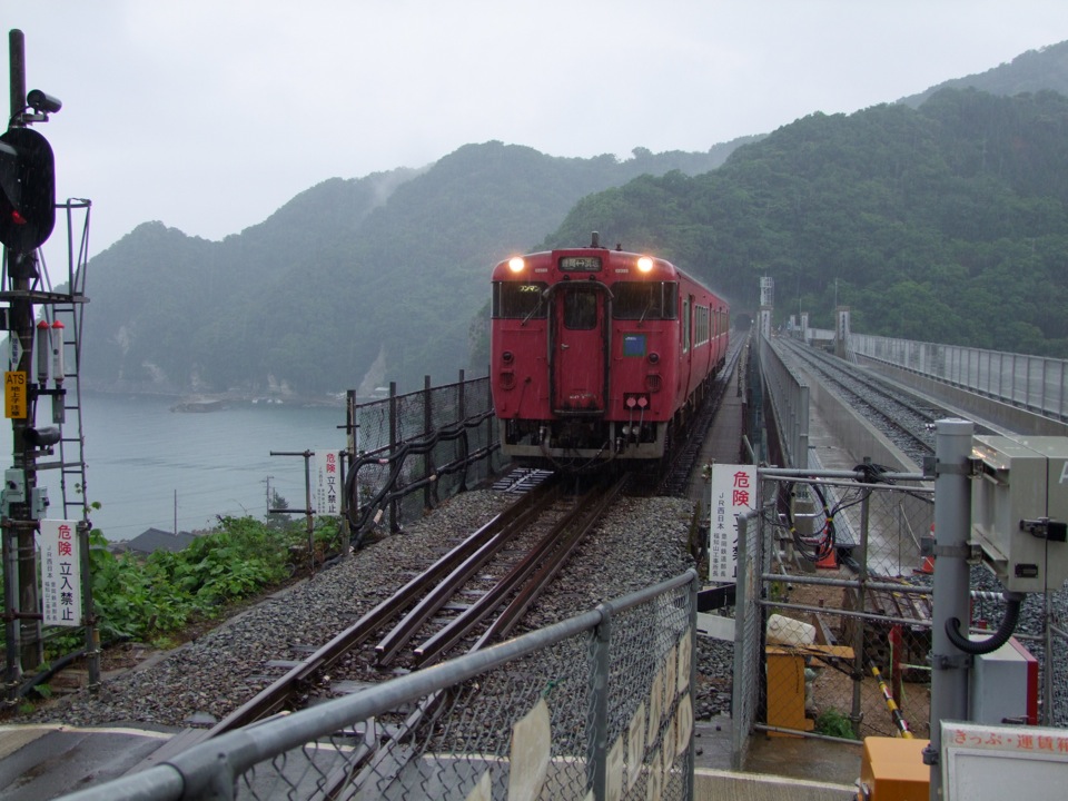 そして、いずれいずれ…と言いながら、その機会は意外にも早くやってくる事になります…。いわゆる橋梁の架け替えで、今までの橋梁は使われない事になってしまいました。また、そこを走る唯一の特急に『はまかぜ』という列車があるのですが、この列車にはキハ181系という、JRの中で最古参のディーゼル特急車両が使われていて、それも今年の11月で新しい車両に替わってしまうそうです。この車両交代でキハ181系は基本的に定期運用を失う事になるので、やはりこちらも今の内に乗っておかなければなりません…。