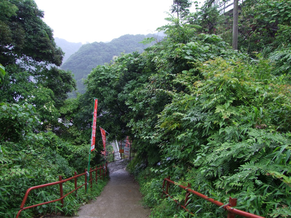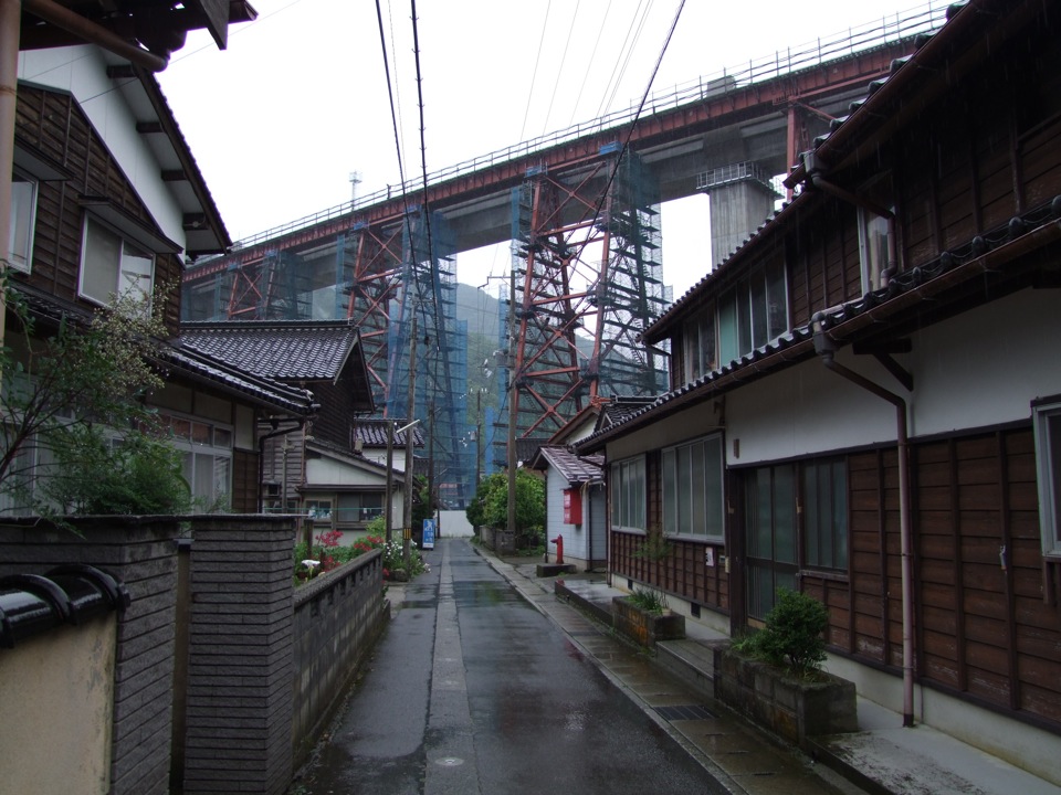 さて、この駅は余部橋梁を渡ってすぐの、かなり高い所に位置する為に、集落に辿り着くにはお世辞にも歩きやすいとは言えない道を、5分ほど下っていかなくてはなりません…。しかも、この日は生憎の雨という事で、道が滑りやすい事滑りやすい事…。いや、本当に滑ってしまったのですが(笑)、これを道を毎日辿っている地元の人は、さぞかし大変だろうなと思いました。それに、夜とかどうなってしまうのでしょう…。