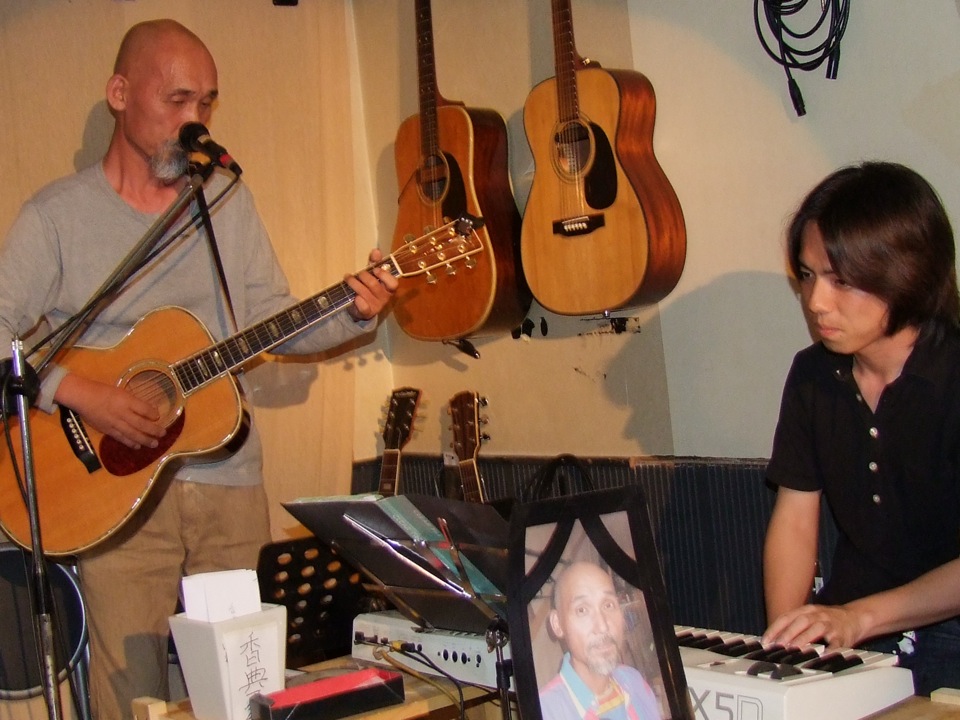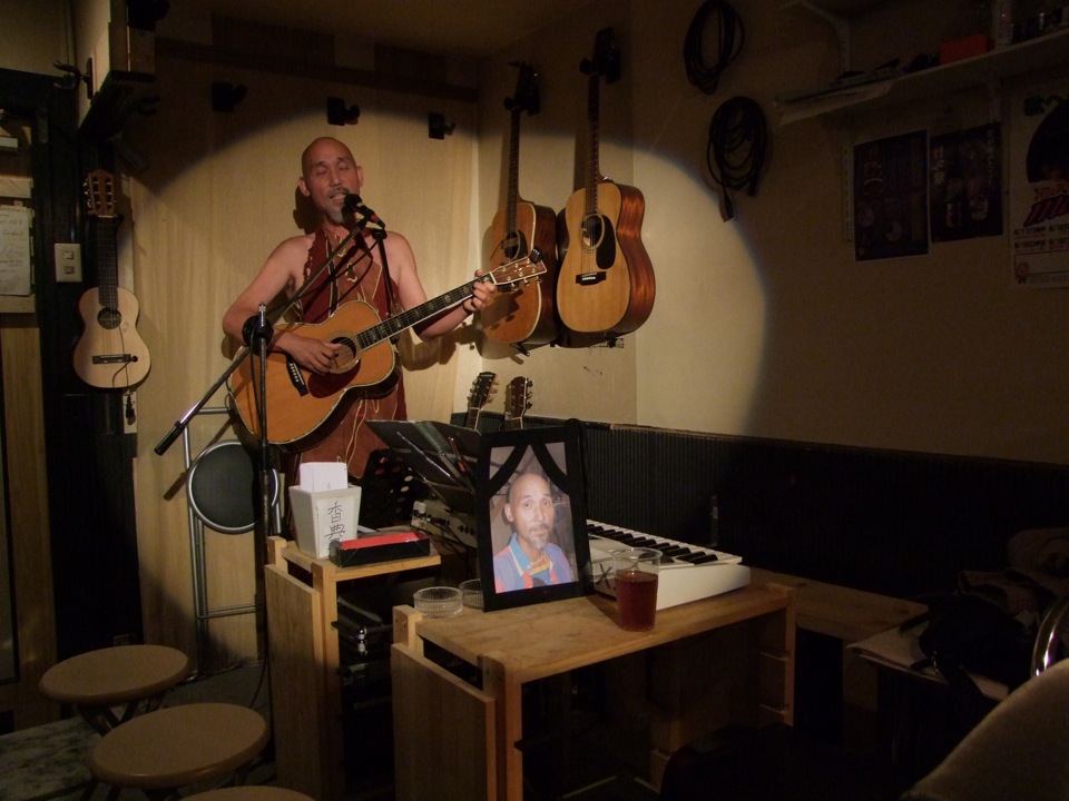 小さい、小さい…とは聞いていましたが、本当に噂通りの広さです。そして、マスターがいい味を出している方でして、何だか改めて、大阪に来たんだなあ…という感じがしてしまうくらいでした。もう、客席の一部がステージみたいなもので、そこには遺影のような写真が飾られております(笑)。やがて、お客さんもチラホラと来た感じになりましたが、まだまだ少ない感じではありました。…聞くと、3daysの初日は、それこそ満席だったのだそうで、全部その日に偏った…と言っておられました(笑)。マスターも、Daddy の客は、正直めちゃめちゃバランス悪いわ…と嘆いてたくらいです(笑)。面白いですけど…。