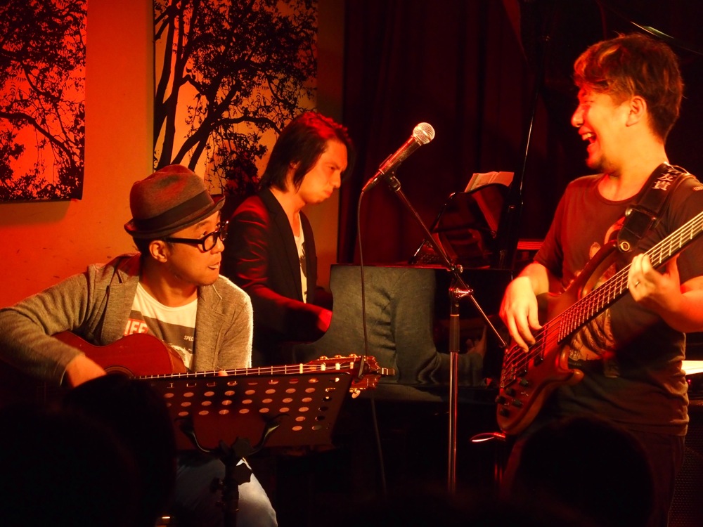 そして2曲目はチック・コリアの“La Fiesta”。こちらはベース、津軽三味線、そして kubota さんのギターの3人によるソロ掛け合いも織り交ぜつつお送りし、会場も更なる盛り上がりを見せていました。実は kubota さんと黒船リーダーの関谷君は、同じ音楽専門学校で教鞭をとっている関係でもあり、今回のイベントは、そういったお互いの信頼関係もが垣間見えるような空間を作り出し、多くの方にとって心地良い時間を提供していたのかもしれません。それが自然と、温かなイベントという雰囲気になっていったのだと思います。とても楽しいライブでした。ありがとうございました!