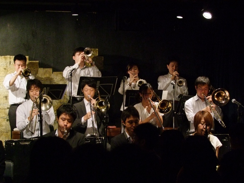 昨日は、自分が参加するライブとして珍しい形態であるビックバンドのライブを、神田にあるTokyo TUC というお店でやってきました。バンド名は“Hard Floods”と言い、結構昔から参加していたバンドでもあったのですが、今回のライブは2年8ヶ月振り(!)という久々さでした。更に言えば、この前回のライブが2007年12月〔竹内大輔の写真日記(~2009)、ほぼ2年振りのビックバンドライブ参照〕の事で、この時も約2年振りのライブだったので、大きく見ると、この5年間で2度しかライブは開催できていなかった事になります…。メンバーの年齢が大体自分と同じくらいという事もあり、周りの環境がどんどん変わっていったのが大きかったのだろうと思いますが、今回こうして久し振りにライブが出来るというのも凄いなと思ったりしたものでした。