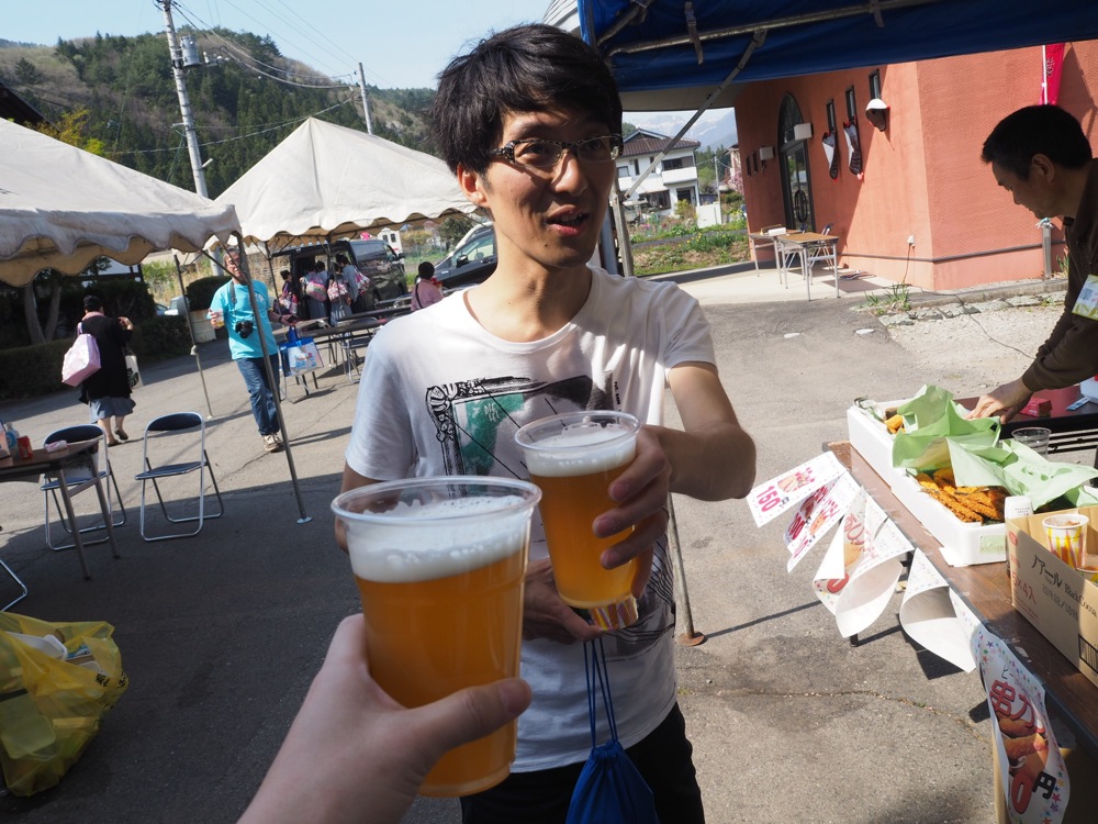訪れた猿ヶ京は所々にお花が咲いていて、春らしい風景が広がっていました。…そういえば、4月という時期に猿ヶ京を訪れるのは初めてだったかもしれません。しかし、この日は真っ青な空に、強い日差しと、気温だけ考えれば夏のような天気でもありましたが、お花の鮮やかさを見るとやはり“春”で、何だか不思議な感覚にもなります。聞けば、この1週間前は非常に寒く、夜は2、3℃ぐらいにまでなっていた日もあったとの事でした。また、遠くに目をやると、まだまだ雪を被った谷川連峰が臨め、これが猿ヶ京の景色の特徴とも言えましょう。…そんな自然が沢山の中で行われた音楽祭は、環境通り、とても伸び伸びと、そして人間味溢れる時間が展開されていったのでした。