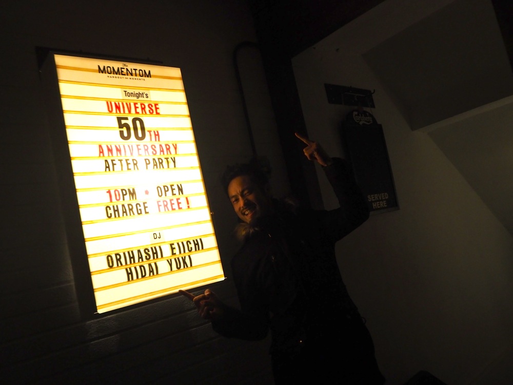 メンバー内での打ち上げを行った後は、『UNIVERSE』お馴染みのアフター・パーティーへ向かいました。既に結構な遅い時間ではありましたが、今回足を運んで頂いたお客さん方と共に、楽しい時間を過ごす事が出来ました。お酒を飲み、お話しをし、お陰で?気付いたら夜中の3:00ぐらいになっていました…(笑)。久し振りの TRI4TH フル編成ライブは、その前後の時間まで思い切り満喫出来た1日になりました。どうもお疲れ様でした!…そして『UNIVERSE』50回記念、本当におめでとうございます!