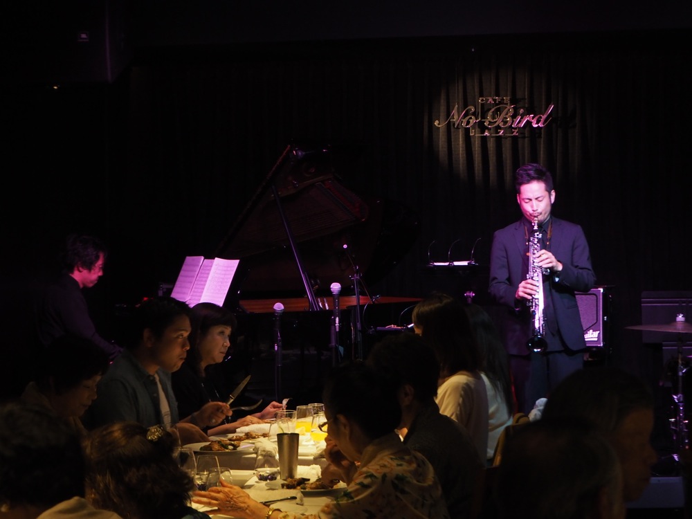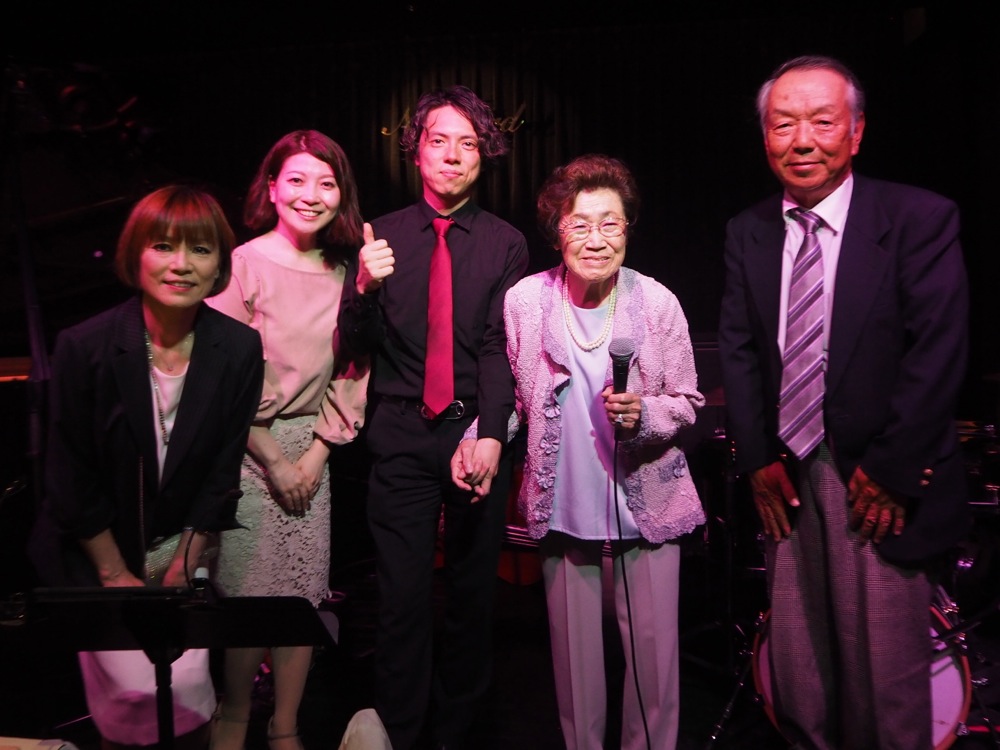 今回も祖母に縁ある方々をお呼びし、勿論演奏メンバーも加えて行いました。竹内大輔トリオにはサックスの藤田淳之介君を迎えてカルテット編成にて演奏をし、ボーカルの白石恭子さんのステージもあり、自分の従姉妹である竹内優歌さんのクラシックピアノ演奏も盛り込みました。どれも三者三様で、それぞれのカラーを出しながらの音楽の時間は、ライブに足を運ぶ事が大好きな祖母にとって、どれもが幸せな時間だったに違いありません。