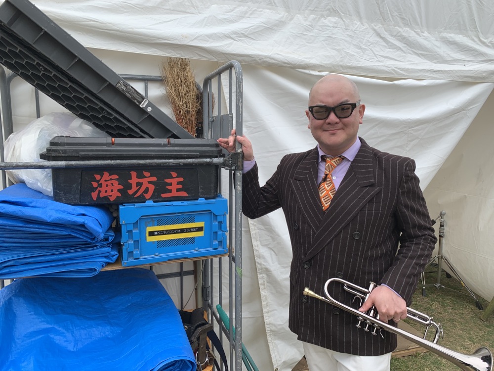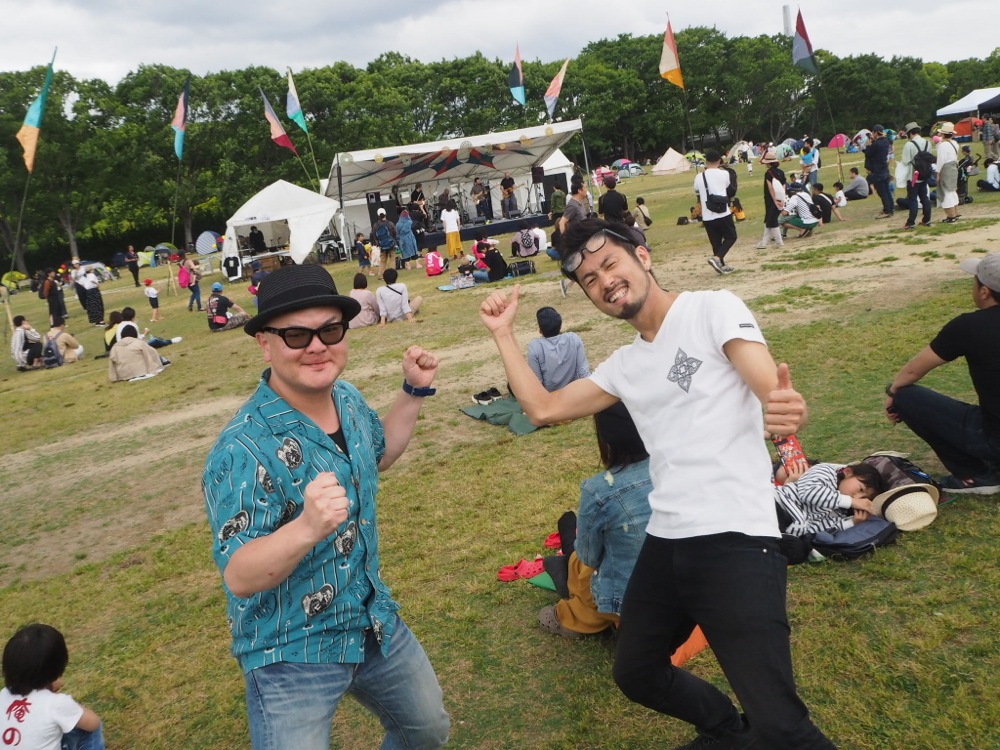 風がいよいよ強くなってきたライブの中盤、お客さん達に「しっとりとした曲と、盛り上がる曲と…どちらが良いですか?」と聞くと、満場一致で「盛り上がる曲!」という声が返ってくるではないですか。回答によっては静かな曲も演奏する事を想定していたのですが、ここは盛り上がっていってしまいましょう。TRI4TH で初披露となる、ランシドのカバー“Time Bomb”をお届けさせて頂いたのでした。ボーカル曲ですが、TRI4TH 流のスカアレンジを施し、インスト音楽とのバランスの良いところを目指して披露した1曲。有名曲というのもあってお客さんの反応も良く、今後の TRI4TH レパートリーのお馴染みの1曲になりそうです。この“Time Bomb”で会場内の一体感は一気に増し、“Guns of Saxophone”、“Maximum Shout”と一気にお送りして今回のステージは終了となりました。最後の方には、もはや風が強かったという事など忘れてしまうような(笑)、そんな楽しさの中でやらせて頂きました。
