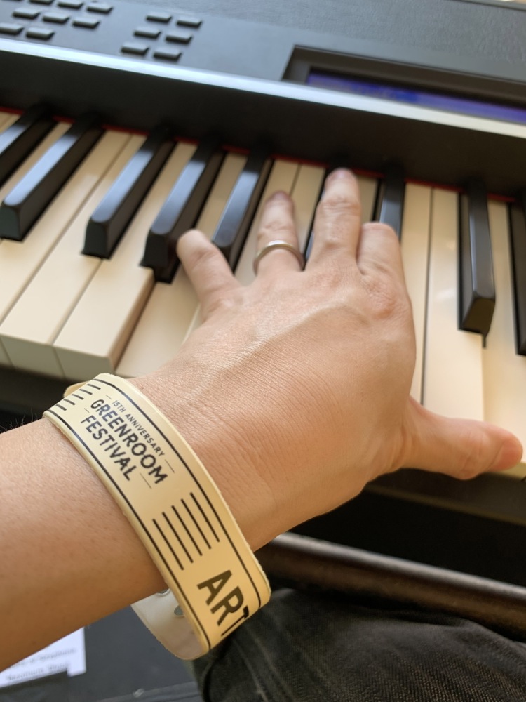 …故に、自分達の入り時間は朝8:30という、なかなか痺れる(笑)時間設定でもあったのですが、逆にトップバッターという事で、いつもよりは長めにサウンドチェックが出来るという事でもあり、この素晴らしい機会への下準備を入念に行わせて頂いたのでした。勿論、皆の腕には今回のステージパスも装着されています。このパスが何となく嬉しかったりするのです。