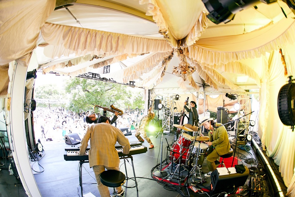 今回、初の GREENROOM FESTIVAL への出演という事で、メンバーの気合いも今まで以上に入っていたのは言うまでもないでしょう。そして何より、挑戦尽くし、初物尽くしが披露された今回のステージ。細かい事はまだ言えませんが、ステージの写真から何か感じ取って頂けたらと思います。