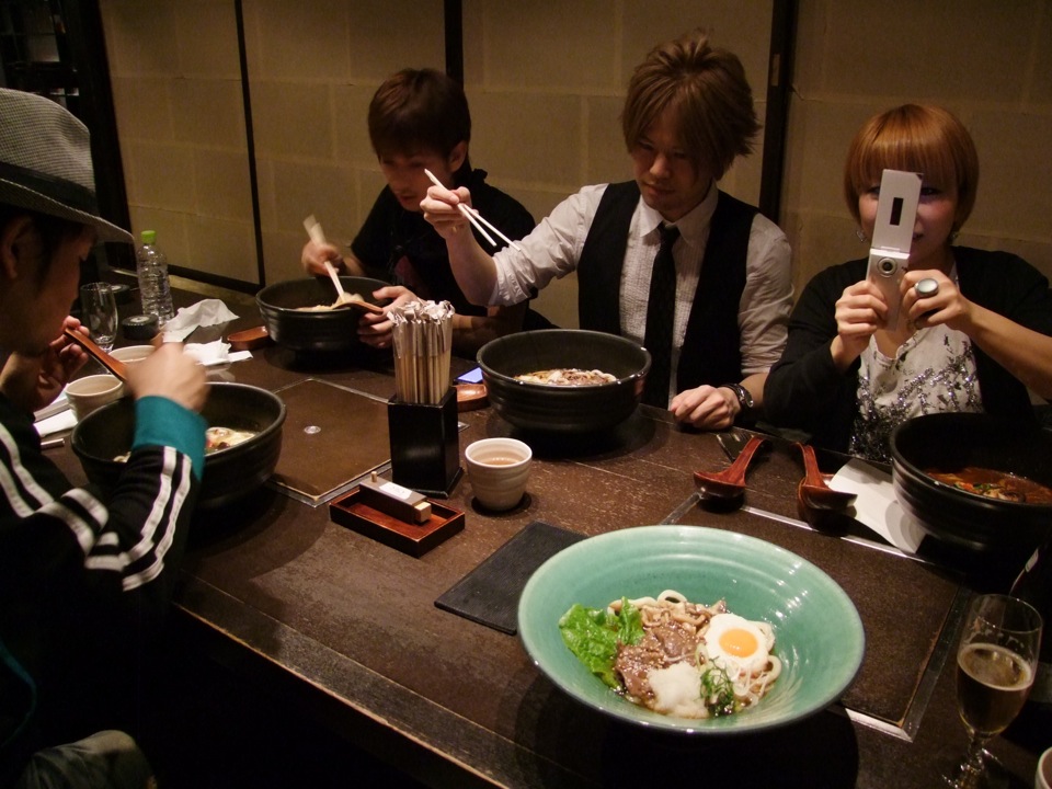 それでも本番前の食事、つるとんたんは欠かせません(笑)。ここで皆で食する事によって、メンバーのモチベーションがどれだけ上がる事やら…。短期集中型のライブになるのは目に見えてますが、リハーサルからの流れにおいてここでの一時休憩は、体力的にも精神的にも良い時間を与えてくれるのです。
