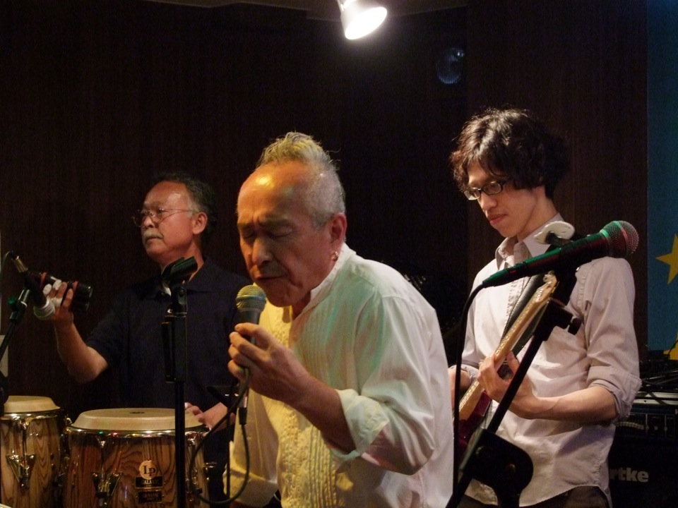 2ステージに入って、お客さんもお酒がいい感じで回ってきた頃(笑)、今度は自分のトリオの演奏が始まりました。今までフォーク系やロック系をやってきた音楽の中で、いきなり自分達の演奏は変わり過ぎな感じもしましたが(笑)、特に周りに歩調を合わせる訳でもなく、そのままの自分達でやっていきました。