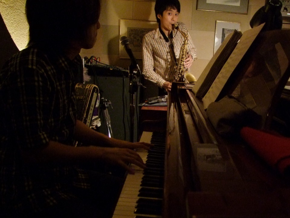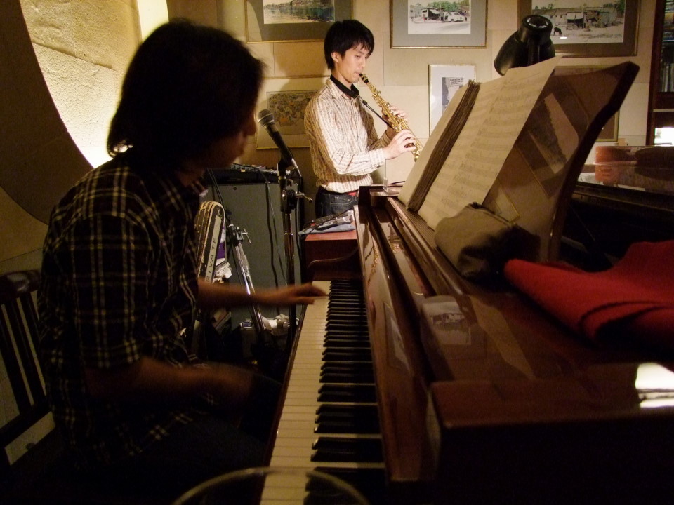 昨日は、サックスの郷原君と、結構久し振りにデュオ・ライブをやってきました。場所はこのメンバーではお馴染みの西麻布 Kie にてで、恐らく今年初となった郷原君とのライブでしたが、演奏のタイミングとしては、とても良い時期だったように思います。…と言うのは、以前に予告をしたように〔2011年7月の自分名義ライブのスケジュール 参照〕、自分のピアノトリオで新しくCDアルバムを出し、レコ発ライブを行うのと、北海道の伊達紋別にライブをしに行くのと前後として、7月13日(水)に郷原君がリーダーを務めるバンド、Deep River との対バン・ライブが控えているからです。このライブへの経緯は、ライブスケジュールの記事を見て頂くとして、その前に郷原君のデュオ・ライブが実行出来たというのは、とても大きな意味を持つものだと思ったものです。