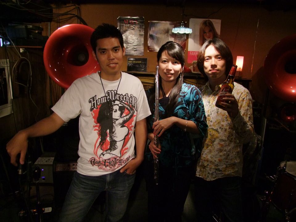 このトリオで最近演奏する曲目というと、西仲さんのオリジナル曲と、沖縄民謡を自分達なりにアレンジした曲の2つがメインを占めています。オリジナル曲ですと、先日レコーディングをした“Aka Is. Funky”や“Pray”が代表的ですが、他にも“あかばなーのうた”(今回は演奏しませんでした)や“Makes Me...”といった曲も、よく取り上げる曲です。そして、“てぃんさぐぬ花”を初めとした、“べーべーぬ草刈いが”、“谷茶前(たんちゃめ)”等の、沖縄民謡アレンジの曲群も見逃せません…。これらの特徴ある曲目を、更にベース“レス”のトリオで演奏するのですから、他に例を見ない感じだと思います。正にオリジナリティ溢れる方向性になってきていて、今回のCD発売も、凄く良いタイミングだと改めて思いました。