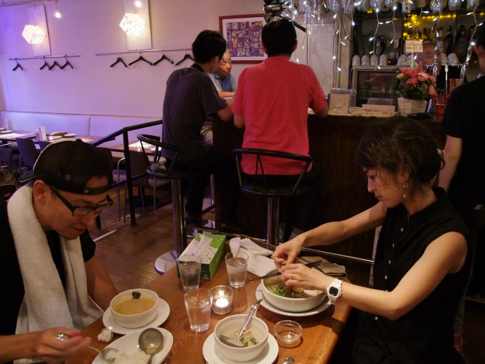 …ただ、初めての共演…とは言え、お互いのメンバーは皆、昔から何度も会っているという、よく知った仲…。リラックスした感じで当日のリハーサルは行われ、楽屋自慢のアジア系フードに舌鼓を打ち、静かに本番が始まるのを待ちました。