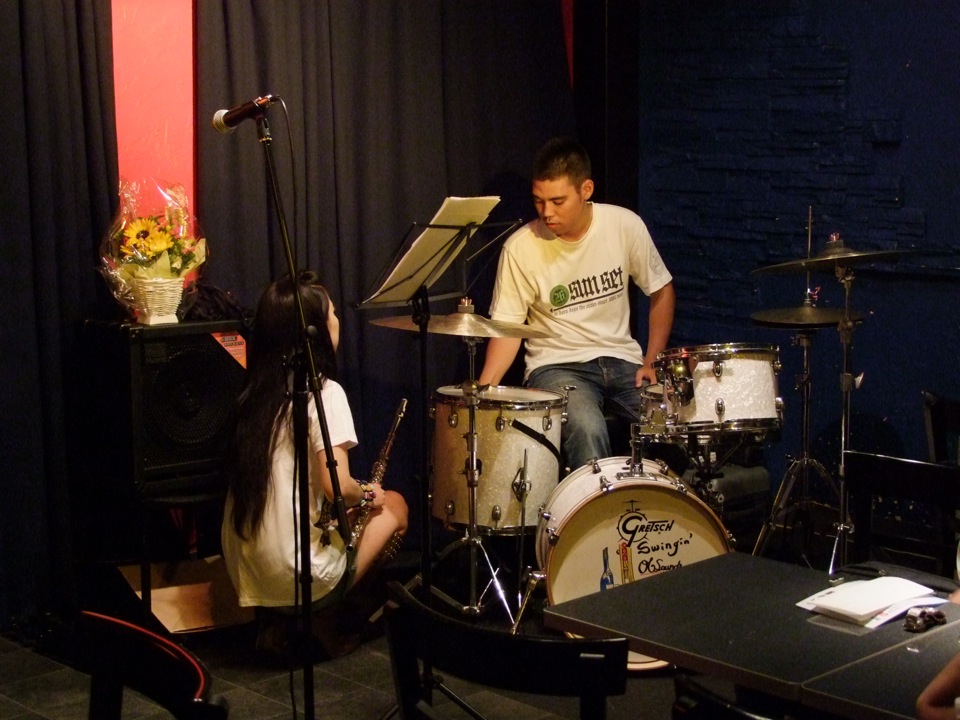 その後、1、2曲演奏した後、1ステージの最後に例の“Aka Is. Funky”を演奏しました。もう既に自分達には、最もお馴染み…とも言えるこの曲。今までに何回演奏したか分かりませんが、これからは様々な方にも、お馴染みの曲であるようにしなくてはなりません…。CD制作と言うのは、最初の目的はやはり“発売”に向かう印象があるので、どことなくこの日でゴールのように考えてしまいがちなのですが、むしろ、現在やっとスタート地点に立ったばかり…と言っても過言では無いのです。多くの人に知って、聴いて貰う…。これから大事なのはその部分です。曲と共に、頑張っていきたいものですよね。