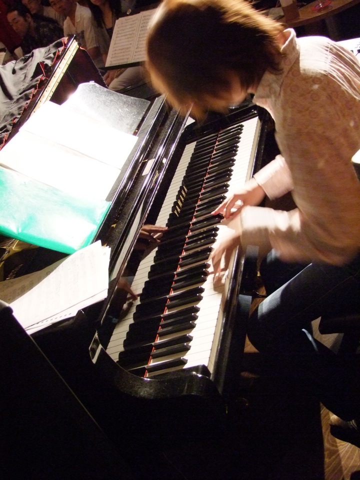 海野さんは、この GG のメンバーとは、個別としては様々なライブを行っていますし、自分とも既に何度も御一緒させて頂いていますが、ステージ上で、そして GG としてライブに出演するというのは、恐らく初めての事だったと思います。元々、GG のメンバーの音大時代の後輩にあたる海野さんですが、そう考えると、GG の事を昔からよく知っている方でもあり、それらを見てきた数少ないプレイヤーでもあるのです。本人は「参加出来た事が夢のようだった」と言っていましたが、本当にそんな感じなのかもしれませんね…。