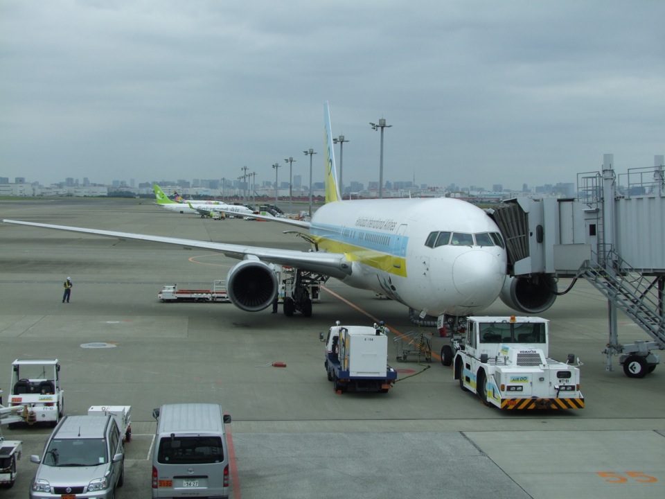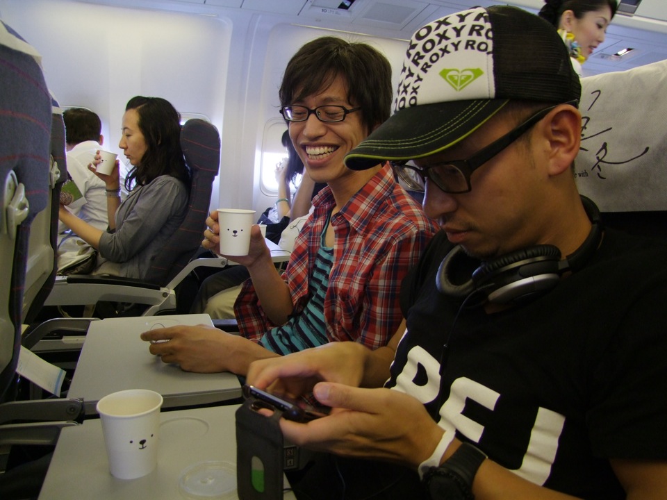 乗った飛行機は、北海道ツアーではお馴染みの北海道国際航空(エア・ドゥ)という航空会社です。今回の機材はボーイング767-300ERという種類のもので、機内の座席の並びが、2列・3列・2列…となっていたのですが、そのど真ん中の3列の部分に、自分達3人が並んで座っているのが個人的にはツボで(笑)、何だか面白い時間でした。逆に言えば、外の景色が眺め辛いのが残念ではありましたが、新千歳空港までは約1時間半の道のりです。ビールを飲んでいる身にとっては(池田君以外)あっという間の時間です。
