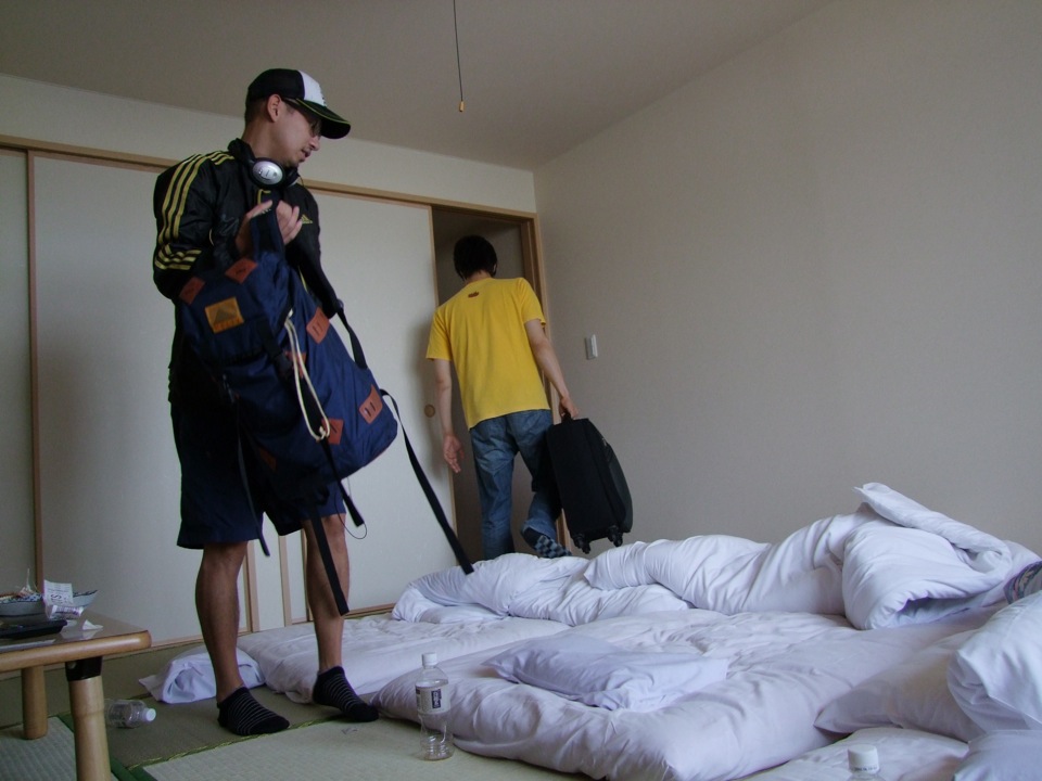 池田君は他にスーツケース、トシさんはスティック・ケースに大きめのリュックと、それなりに多い荷物ではありましたが、自分はというと、ポーチにいつものカバン1つという、他の2人に比べると相当身軽な格好です。自分は楽器が無いので、3日間くらいの行程だとこれで済んでしまうのですが、これが旅慣れているのか、手抜きと見られるかは、人によってそれぞれな気もしてしまいます(笑)。
