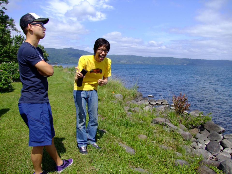 さて、名残惜しいですが、もう伊達を後にしなくてはなりません。自分達はお昼過ぎの飛行機を予約してあったので、そんなにゆっくりしていられないのが歯痒いですが、少し早めにホテルを出発し、車で支笏湖を経由して空港に向かってくれるというとルートを通って下さいました。最後まで嬉しい待遇ではないですか。郷原君はこの後、札幌に用事があると言っていましたが、空港で自分達を降ろした後、更に札幌までも送ってくれるらしく、これは感謝してもし切れない程ですよね…。それは郷原君も甘えてしまいます(笑)。