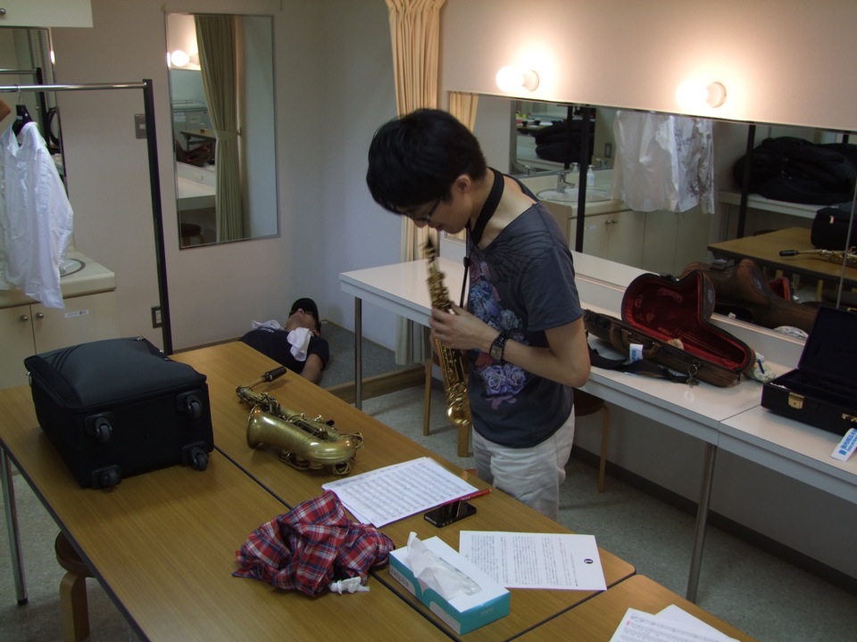 な~んだ、よし、じゃあ、置いていこう!…と、冗談交じりに本気で置いていき(笑)、先に自分達は会場入りをしてリハーサルを行っていました。まあ、じきに郷原君は到着するので心配は無用でしょう。リハーサルというか、軽いサウンド・チェックでしたので、後はいつ本番が始まっても良い状態です。ある意味で、郷原君の方が入念だったのではないでしょうか(笑)。
