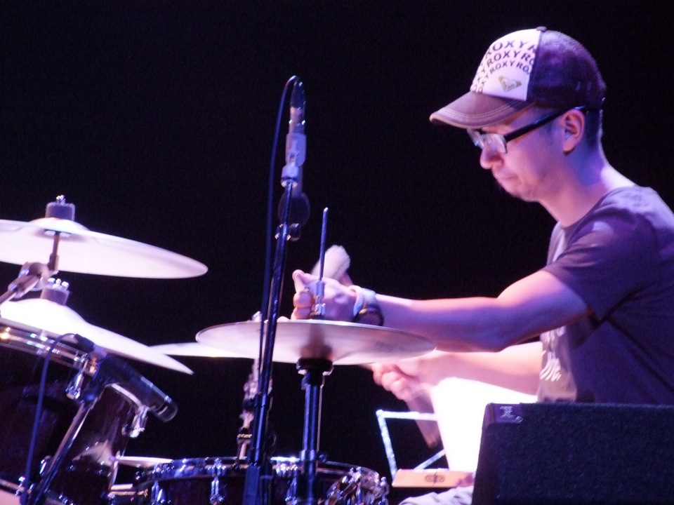 この環境で演奏するのも初めてではなく、やはり Deep River との2マン・ライブで既に郷原君に参加して貰っていますが、郷原君の心境的にどうだったのでしょう。ある意味で今回で3年目の出演となるこのステージで、自分、竹内のオリジナル曲を演奏するとは思ってもいなかったのではないでしょうか…。しかし、確かにお客さんの中には、郷原君の演奏を知っている方もいらっしゃっていますので、1年越しという意味でも、ステージにまた立てる喜びは大きかったのではないかと思います。
