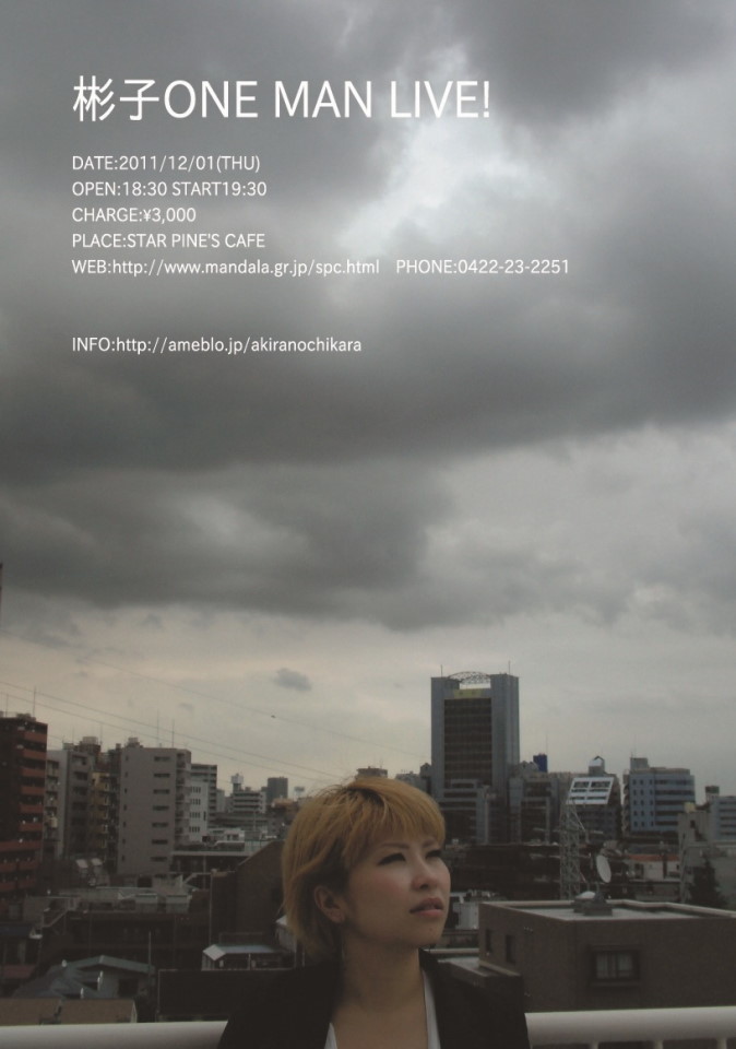 ライブで12月は幕を開けます。しかも彬子さんにとって初のワンマンライブという事で、