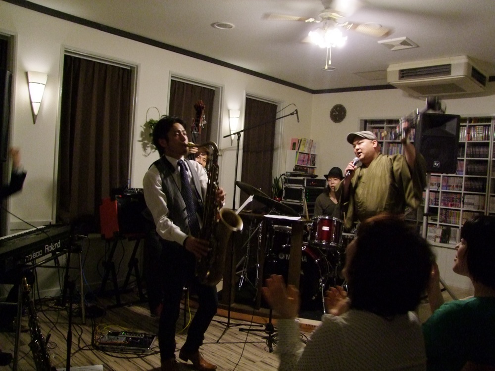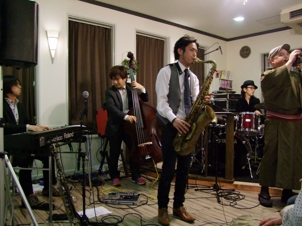 …ライブは18:30からの予定となっていましたが、お客さんは既に満杯の状態となっていて、こちらも気合が入るというものでした。流石、鳥取と言えば藤田家…という感じですが(笑)、こういった Cafe でのライブというのも、またいつもと違った雰囲気もあり、最初は探り探りの演奏になっていく事でしょう…。これはもう、自分達的に既に分かっていた事で、この共通の思いが、結果的にリラックスした演奏に繋がっていった事になるのです。