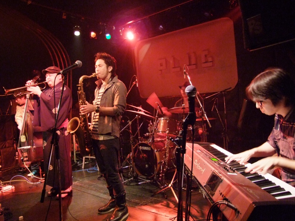 この日は正直、お客さんがいつもより少ない状況ではありました。確かに、ほんの2週間前には同じ Plug で自主企画ライブ〔TRI4TH Presents Tokyo JAZZ Tribe Vol.1 参照〕を行っていますし、来月8月にはCDをリリースする背景もあり、続々と特徴的なライブが続いてしまっています…。言わばこの日はその間に挟まれた、何とも難しい期間内でのライブだったわけですが、今は、自分達に出来る事をそのままやるしかありません。勿論、メンバー皆、気合は入りっぱなしでしたが(笑)、その気合いをどこに持っていくかが、今回のライブのポイントにもなっていたように思いました。