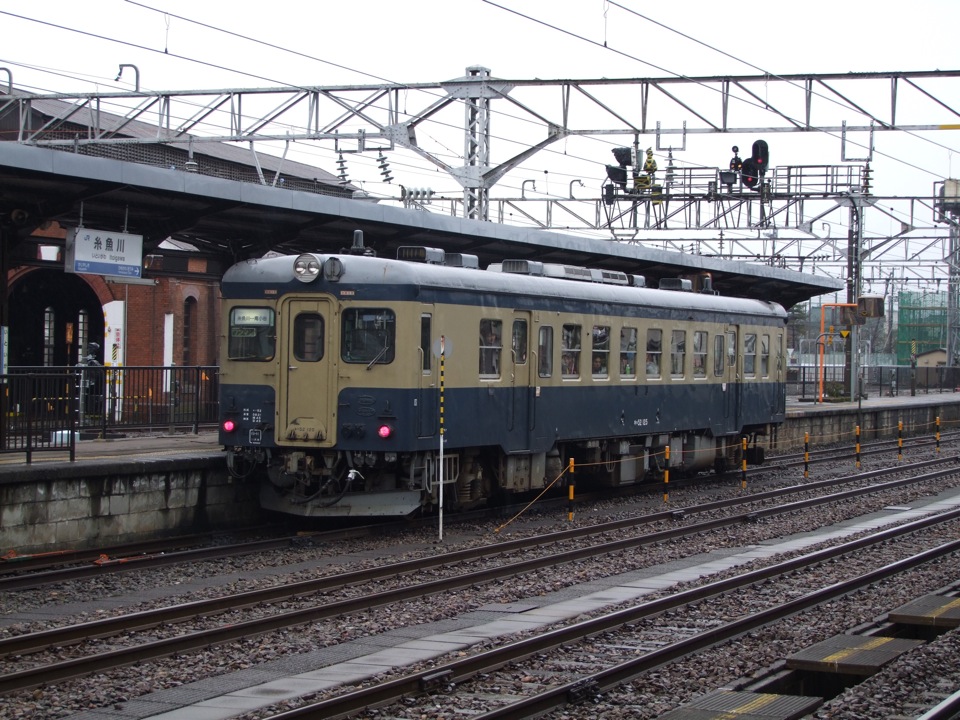 JR大糸線は、ここ糸魚川駅から長野県の松本駅までを結ぶ路線ですが、糸魚川駅から途中の南小谷駅まではJR西日本の路線で、南小谷駅から松本駅までの間はJR東日本の路線となっているのです。勿論、これは国鉄がJRになった際に行われた措置ではありますが、そもそも現在のJR西日本の区間だけ電化されておらず、使われる車両も元々異なっていたので、南小谷駅が境界駅となるのも当然だったように思います。