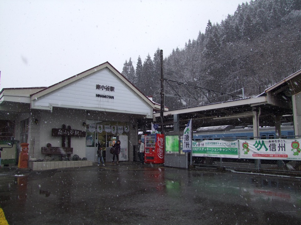 最近の車両というのは、色々と軽量化も進んでいて、こんな時に1両編成では何だか頼りなく思えてしまう車両ばかりなのですが、このキハ52形の重厚な走りっぷりはどうでしょう。明らかに、現在の車両では味わえないような雰囲気を持っています。また、旧国鉄塗装の持つ懐かしい感じも、そうさせるのでしょうか…。車内は混雑していたので、結局座席には座れないままでしたが、南小谷駅までの約1時間、なかなか感慨深い時間を過ごさせて頂きました。前述したように、南小谷駅はJR東日本との境界駅。こちらは新宿までの直通列車が運転されている程で、急に垢抜けた雰囲気を感じてしまいましたね…。