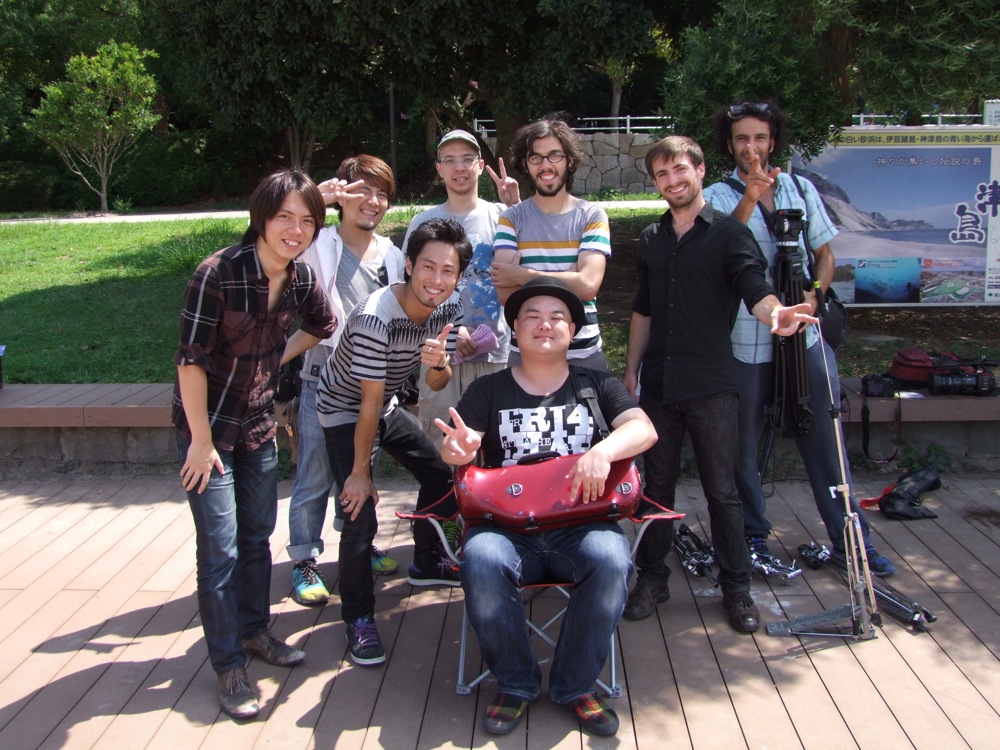 そんな撮影当日に集合したのは、写真でも分かる通り、お台場海浜公園にて…でした(笑)。この砂浜の上に強引にセットを組み、かなりの炎天下の中ではありましたが、演奏している風景を撮影していきました。