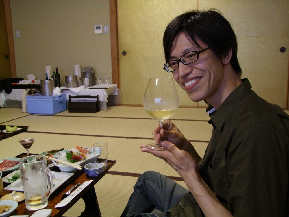 さて、ホテルに戻り、宴会の始まりです!…まさか協会の方々も、自分達がスワン・ボートに乗って洞爺湖内を漕ぎ回ってたとは思わないでしょうが(笑)、思い切り運動?した後の料理はまた格別なのです。ビールも軽々入ります。そのまま突き進み、ワインも軽々入ります!…そして勿論、日本酒も軽々…。