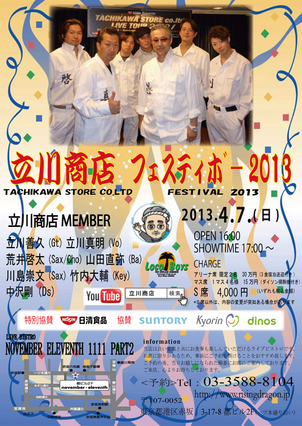 “立川商店フェスティボー2013”と銘打たれた今回のライブ。自分は立川商店で