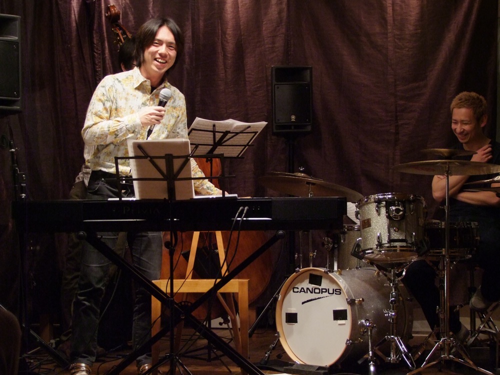 今回は、本来なら19:30スタートのところが、伸びに伸びて20:00頃から、そしてたっぷりと演奏してしまったので、ライブ全体が終了したのは23:00に近い時間となってしまいましたが、多くのお客さんに最後まで聴いて頂けて、本当に嬉しかったです。また、バタバタの雰囲気の中でも会場の温かさに包まれて、自分としては楽しく演奏出来ました。改めて、このトリオで演奏する事が、自分の音楽活動の意義をそのまま表しているのだと思いましたし、それは今後も続けていかなくてはならない事の1つだと確信しましたね。4月10日に新しいCDが出ますので、また何らかのライブを企画したいものです。今回もありがとうございました。またどうぞよろしくお願いします!