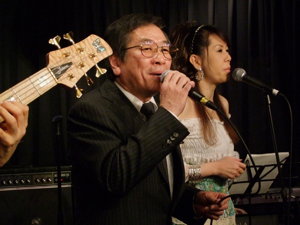 マスターが前で歌っているのを見て、触発されたのでしょうか?…そのまま前に出てきたらと思ったが矢先、代わりに恭子さんがドラム椅子に座り出しまして…。一体何が起きるのかと思いきや、恭子さんがドラム・スティックを持ち、そのまま曲が始まってしまうではないですか!…曲は、安部恭弘の“ロング・バージョン”でしたが、これが意外にしっかりとしたリズムを叩いてくれていて…。ちょっと、何気に安定しているじゃないですか(笑)!