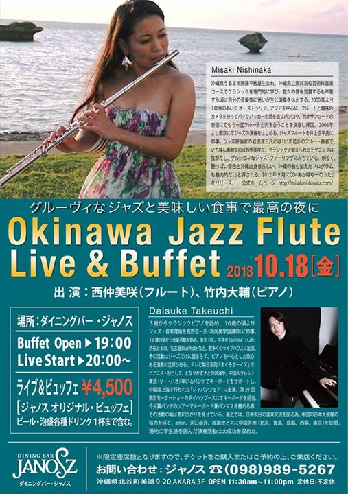 フルートの西仲美咲さんと、沖縄の北谷でビッフェ・ライブを行ってきます。