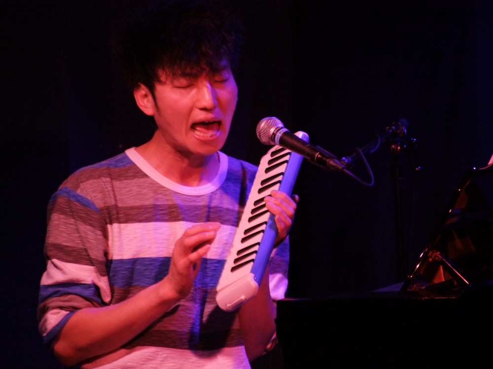 トップバッターは水井君。ピアノ弾き語り…というスタイルですが、そう言ってしまうのはおこがましい程の個性の持ち主で、相変わらず安定した狂いっぷりでした(笑)。また、ピアノの他にもピアニカを多用し、バラエティ豊かな表現方法を見せてくれます。 ボーカル…と言うよりもボイスに近い部分もあるでしょうか。いつの間にかステージを釘付けにしてしまうインパクトをもって、このイベントが開催された感じがありました。