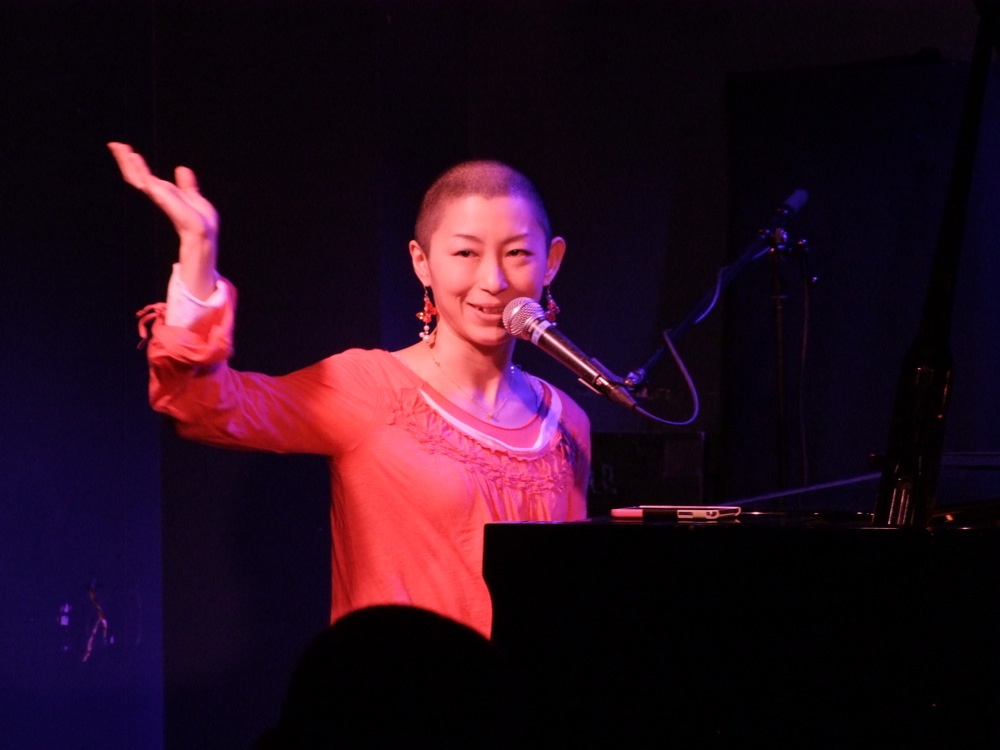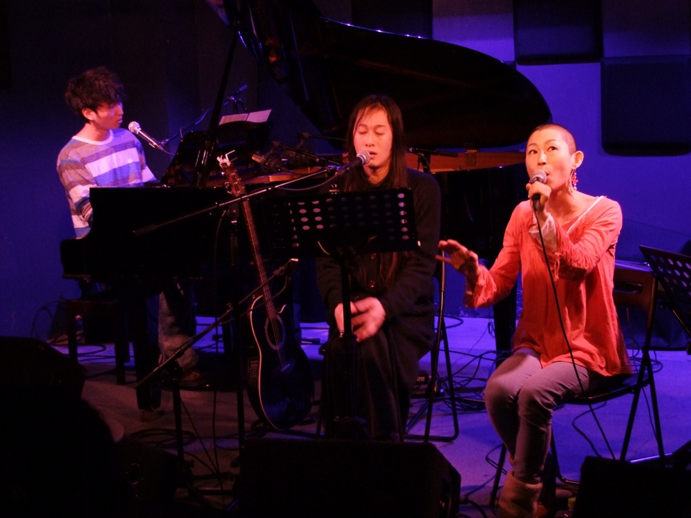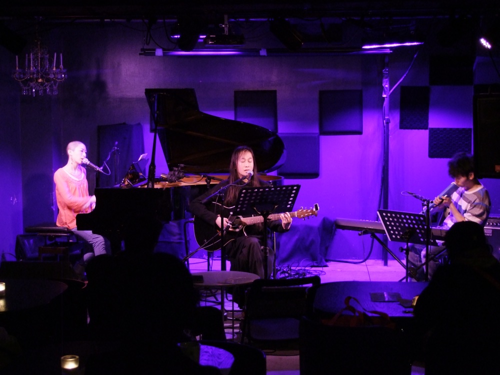そして2番バッターは斎藤さん。本番前から、寒い寒い…と言っていましたが(笑)、その寒さを感じさせない程の、非常に温かみのあるライブでした。伸びのある声と、綺麗に響くピアノの音が合わさり、会場全体を包み込むような世界観で客席を魅了していきます。両手に奇才…と言うのは斉藤さん目線のタイトルで、正に水井君と鹿嶋さんの事なわけですが(笑)、奇才と名付ける故、逆に斉藤さんのキャッチーなオリジナル曲が引き立ち、個性に反映されている印象がありましたね。