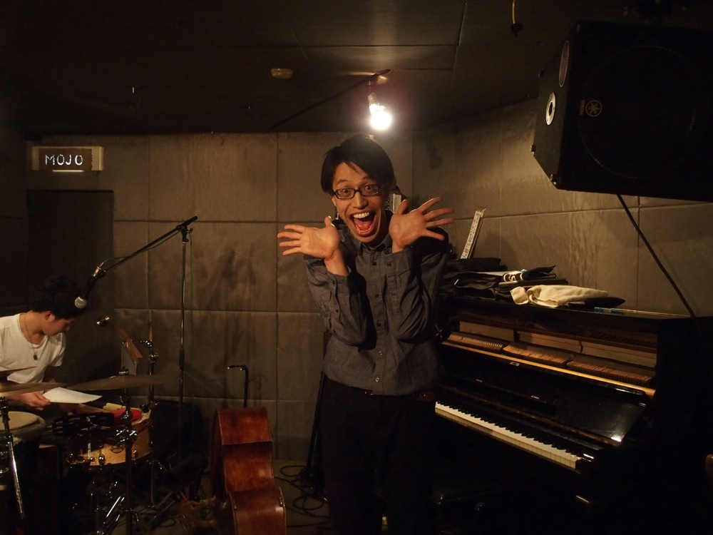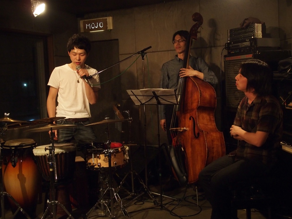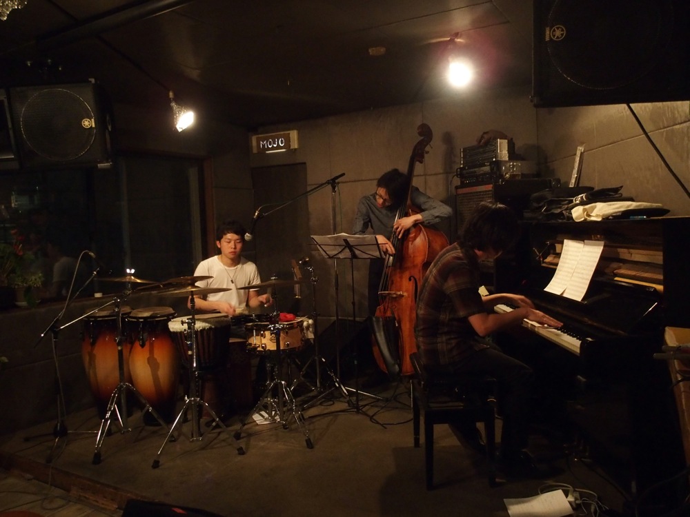 今回は、長めの1ステージのみの演奏となりましたが、自分達の前にオープニング・アクトとして、ミキヤがセッションの場で知り合ったという、パーカッションの木川保奈美さんが自身のトリオで出演してくれていました。メンバーは、自分や池田君より全然若い方達でしたが、武蔵野音大や、洗足学園の出身だそうで、共通の知り合いが既に何人か居て面白かったです。やはり音楽の世界は狭いのです。