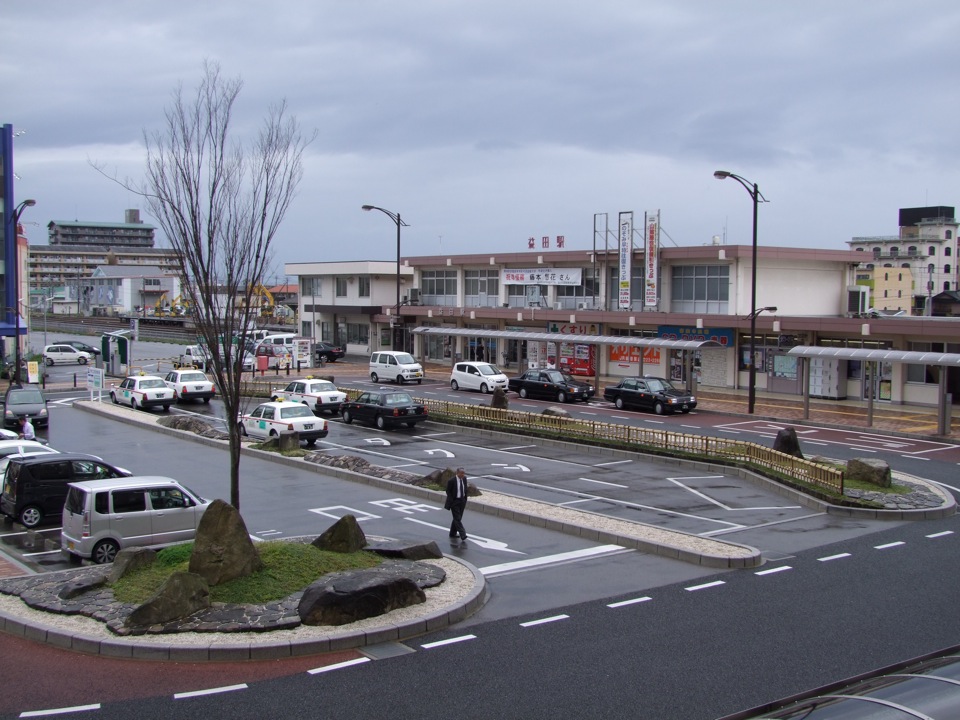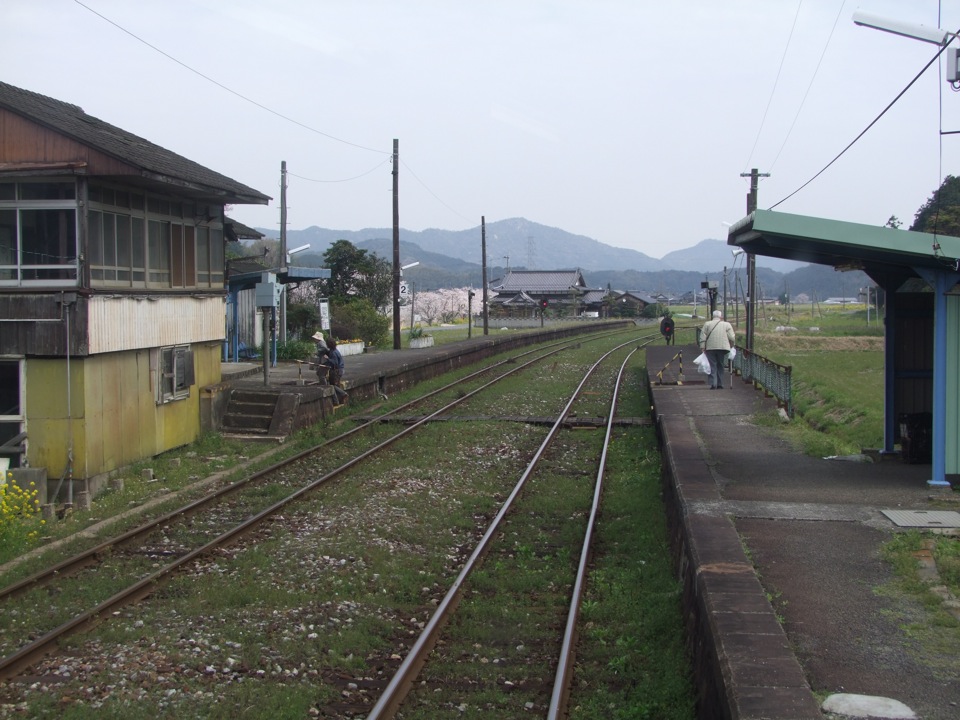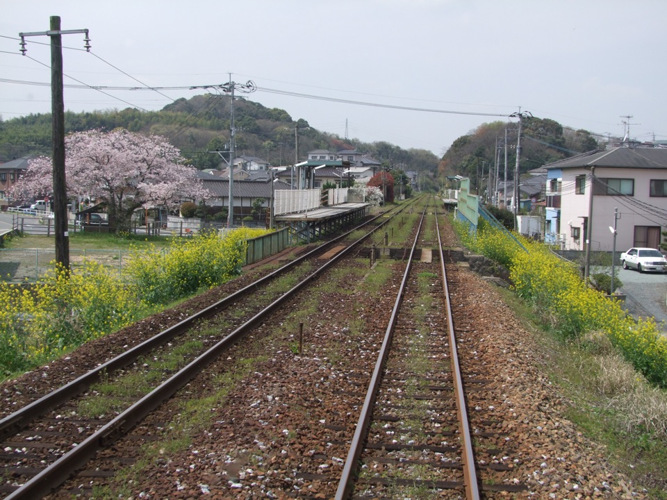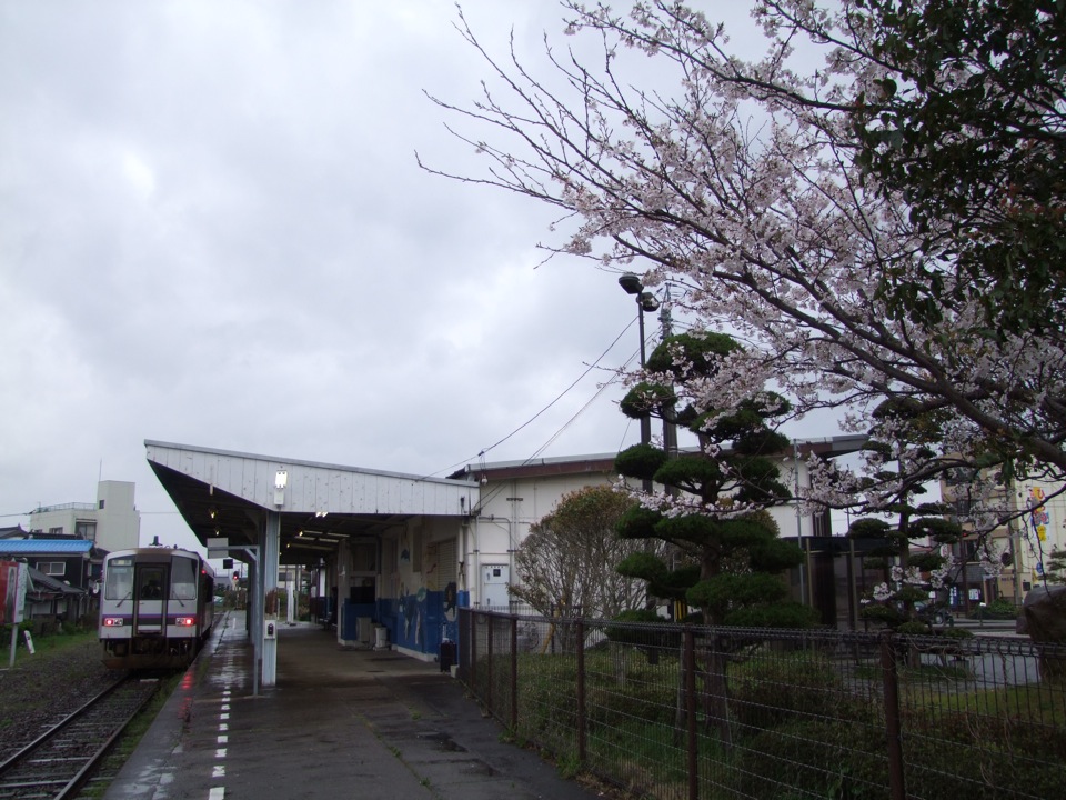 電車は2両編成で、これは典型的なローカル線です。車内は、朝特有の気だるい空気が流れていて、1つ1つの駅に停まっては発車していくという作業が、何だかまったりとしたムードで過ぎていきました。列車の右手には海も見えるのですが、雨という天気の為、何が何だかハッキリとは分からない感じです…。正に“地元”な時間がそこにはあり、車内にいるお客さんも、まさか自分が今朝羽田からやってきたお客だとは思ってなかったに違いありません。