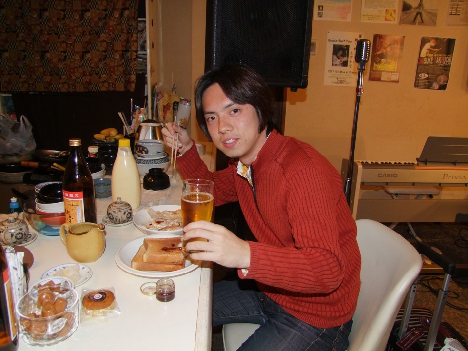 小倉 Dreams は、北九州ツアーがあると必ず立ち寄るお店で、もうお店の方ともすっかり顔馴染みになってきた感があります。ただ、今回は当初はこのお店でライブをやる予定にはなっていなく、お店の方の意向で急遽ライブをやらせて頂いたのですが、何とも有難い事だと思います。お店に着くと、早速ビール、ご飯の歓迎を受け、これは自分のライブも気合いが入るというものでした。繰り返し言いますが、地方にこういったお店があるというのは、自分にとって落ち着きを持てますし、本当に嬉しく思える話しなのです。
