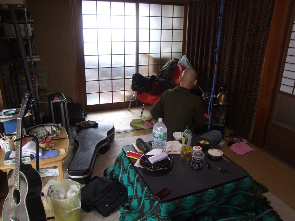 …朝起きると、「何も無いけど」…と言って、Daddy さんはご飯を用意してくれました。…とは言え、白いご飯にお味噌汁、そして豆…という簡素なものでしたが、これが自分は何だか御馳走に見えてきたのが不思議に思えました。「うちはオール電化なんよ」…と説明されましたが、要はガスが入っていないとの事で(笑)、電気ストーブやコタツ等、確かに電気で全てを賄っているそうです。